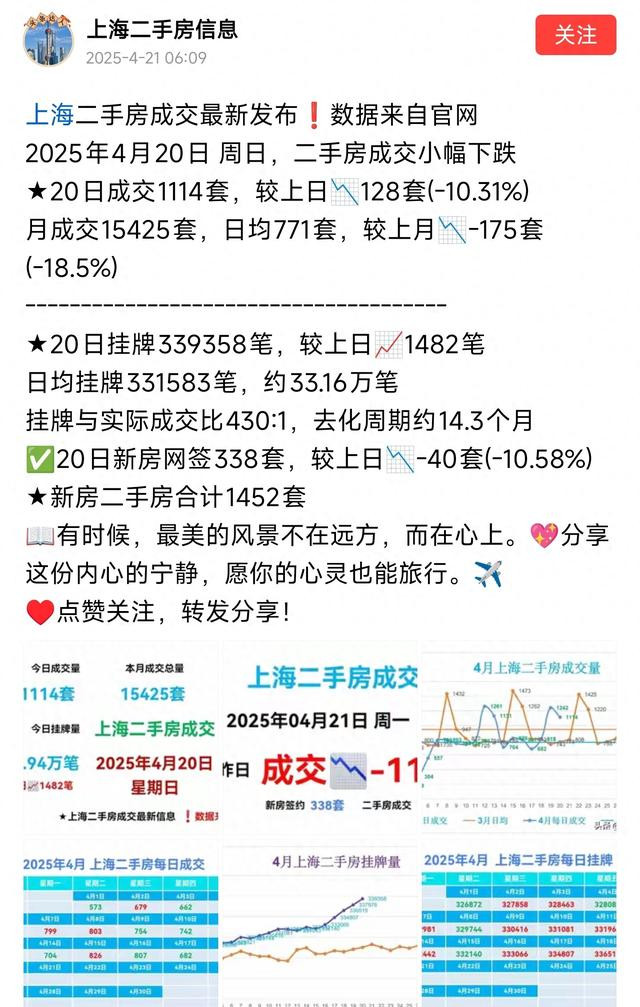 楼市新机遇,上海楼市太燃了,二手房单日成交1114套,环比下跌10.31%,释放了什么信号?